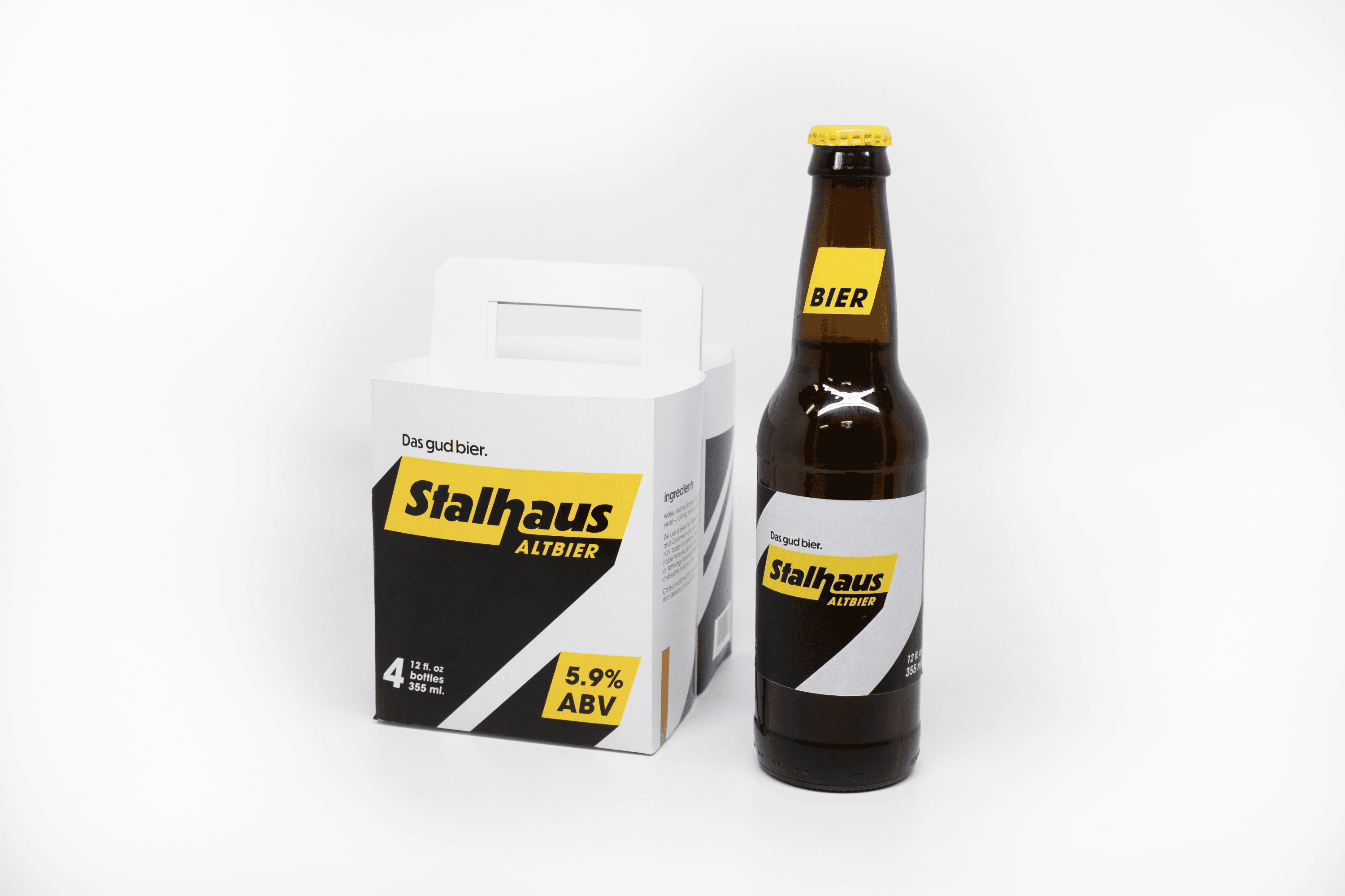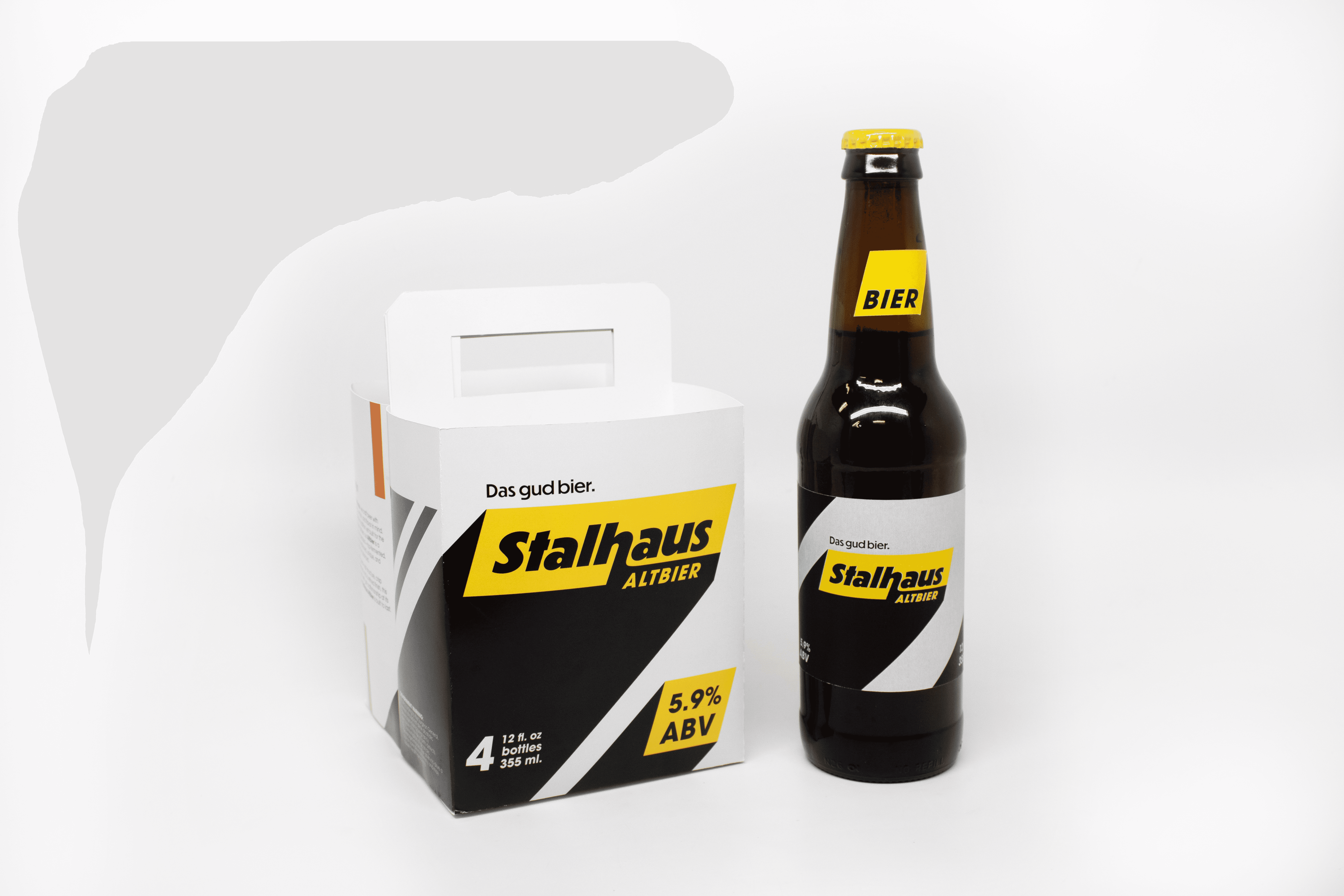Stalhaus Bier, German for "steel house beer" is inspired by the Bauhaus style, using geometric shapes and typefaces and minimal color usage.